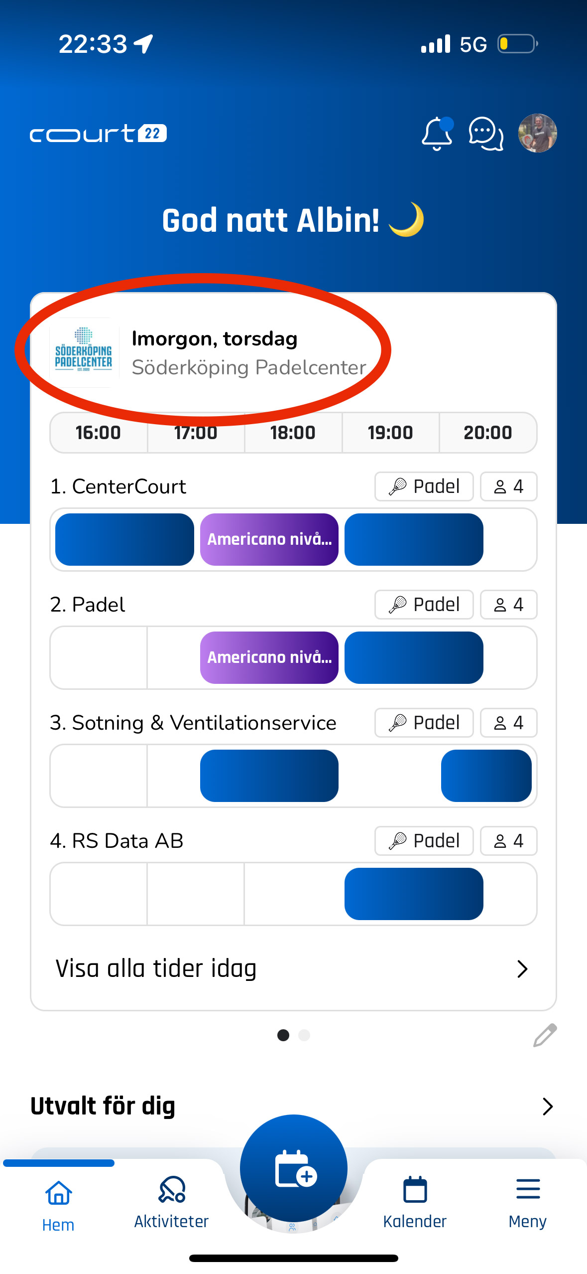 2. Klicka på Söderköping Padelcenter (Se bild)