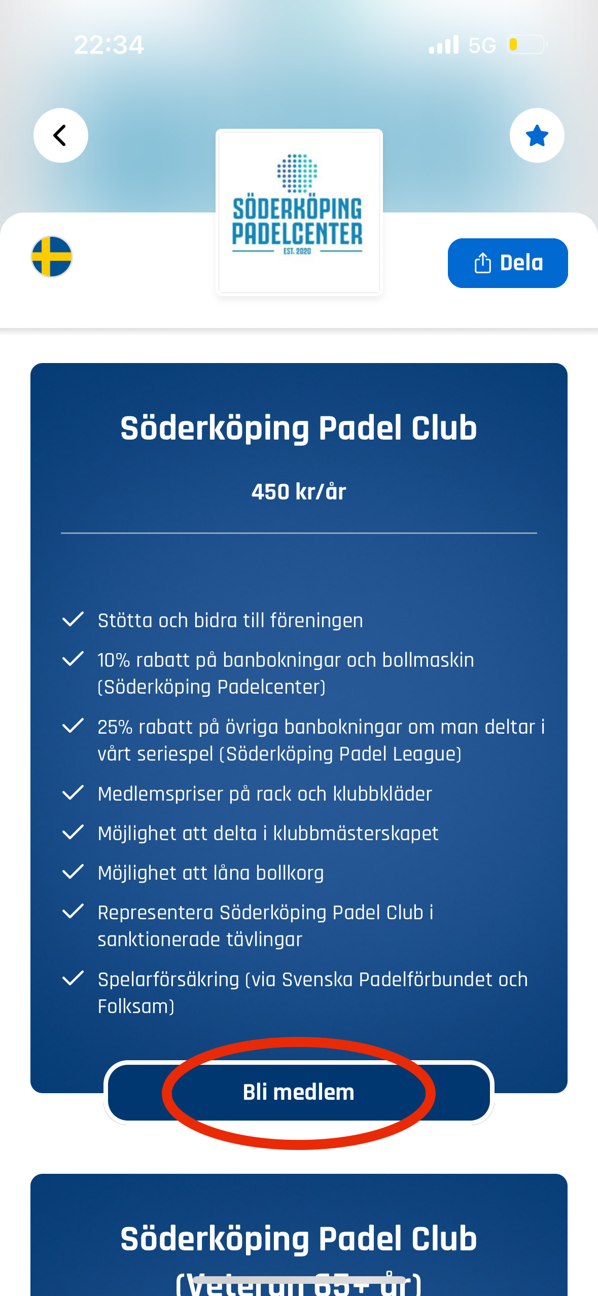 4. Klicka på ”Bli medlem” under medlemskapet. (Se bild)